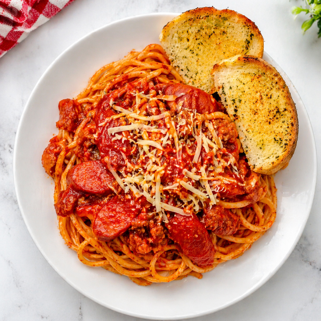🍝 Filipino Spaghetti (Sweet & Savory Classic) 💛 A Cozy Filipino Story Growing up in a Filipino home, spaghetti wasn’t