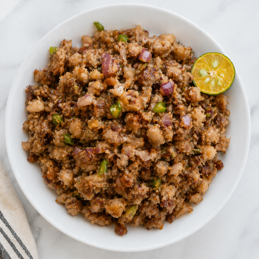 Authentic Filipino Pork Sisig (Crispy, Tangy & Flavorful Kapampangan Recipe) 🌴 Story There’s something truly special about a sizzling plate