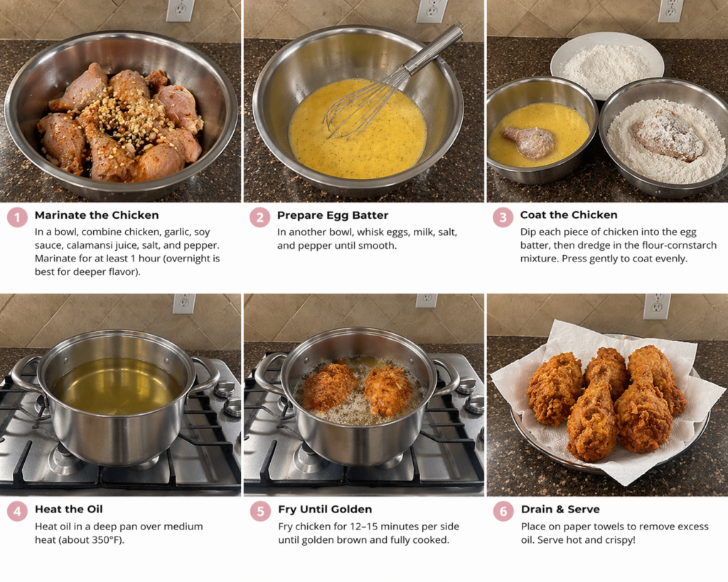 This Filipino fried chicken is more than just a recipe — it’s a taste of home. Crispy on the outside, juicy on the inside, and full of comforting flavors, it’s the kind of dish that brings everyone together around the table.