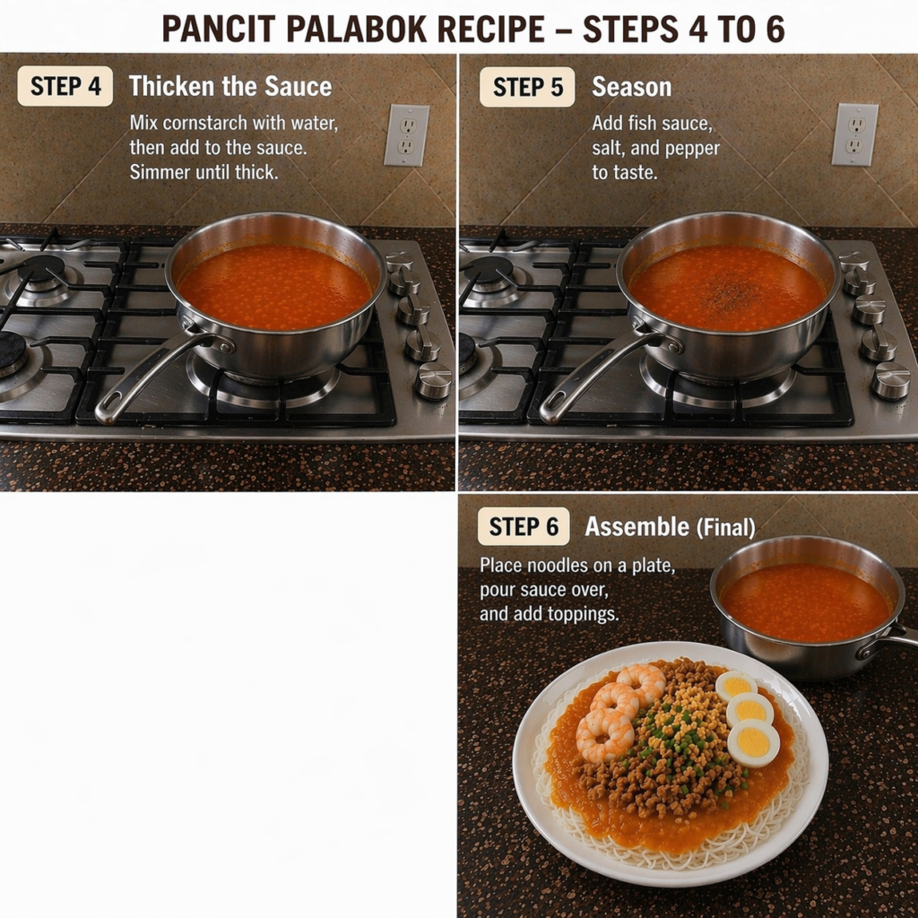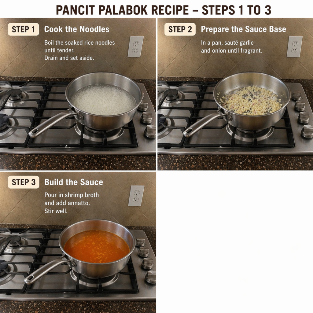 Learn how to make authentic Filipino Pancit Palabok with rich shrimp sauce, rice noodles, and savory toppings. Easy, delicious, and perfect for family gatherings.